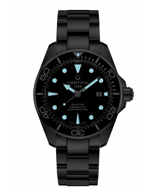 Certina DS Action Diver Powermatic 80 C032.607.11.091.00 tilbyr en gjennomført kombinasjon av dykkerfunksjonalitet og tidløs eleganse. Med en mørk urskive, keramisk bezel og 300 meters vanntetthet er dette en klokke som tåler krevende forhold samtidig som den passer til hverdagsbruk.