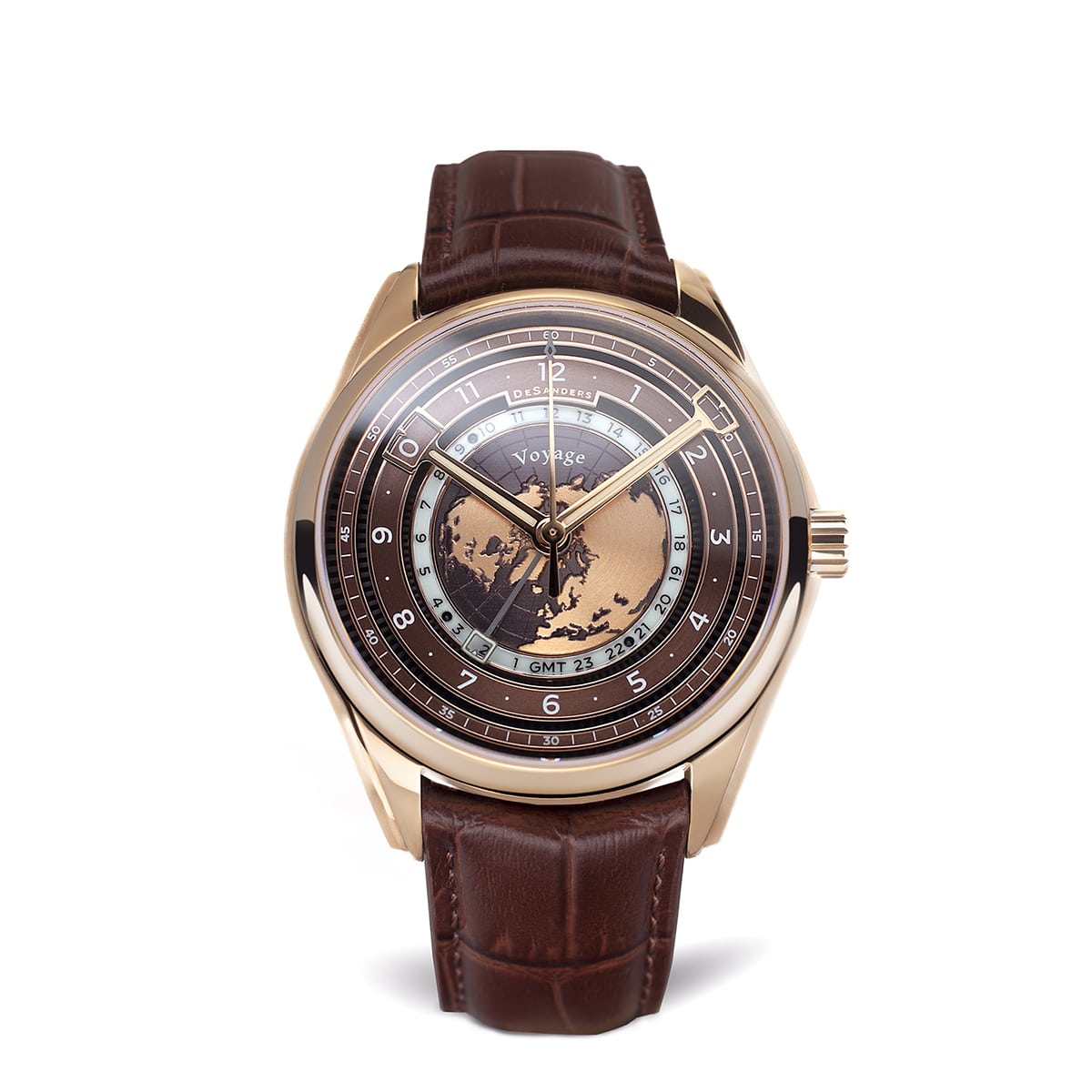 Voyage GMT er som navnet tilsier en homage til det å reise – og da kanskje spesielt reisens gullalder, hvor ideen å dra ut og oppleve et nytt land eller kontinent ble forbundet med noe romantisk og eventyrlystent. Designmessig henter vi dette både i de overordnede formene som oppleves som en blanding av klassiske design linjer blandet med moderne former, men også faktisk tydelig referanser i en rekke av detaljene.