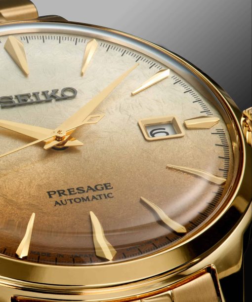 Presage Cocktail Time-kolleksjonen ble inspirert av den japanske skikken «Nomunication hour» – nomu (drikke) og kommunikasjon, etter kl. 17.00 – da er det cocktailtime og tid for å snakke om ting. Hvert ur er oppkalt etter drinker mikset av Hisashi Kishi, hovedbartender i Star Bar i Tokyos Ginza-område.