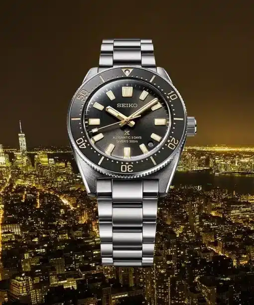 Seiko Brand 100th Anniversary Seiko Prospex 1965 Heritage Divers watch Special Edition. Stålkasse med super hard coating, og er vanntett til 300 meter. Kassen er krympet noe fra forgjengeren (SPB143, som var 40,5mm) og måler nå 40mm. Tykkelsen er også redusert fra 13,2mm til 13mm. Sammenligner du SPB143 og nye SPB455 ser du også at datovindu er flyttet ned til mellom klokken 4 og 5. Verket som står i klokken er Seiko sitt egenproduserte 6R55 med 72 timers gangreserve.