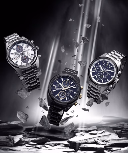 Inspirert av den ikoniske monokrome «Panda»-kronografen fra 1972, har denne modellen samme kronografstil som originalen, men med elegante gullfargede detaljer som markerer Seikos 100-årsjubileum.