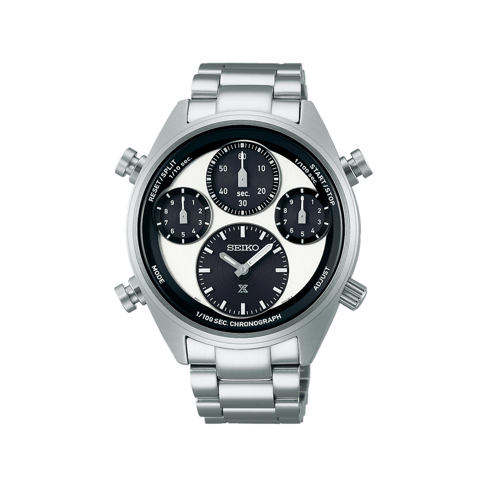 Urskiven på dette spesielle uret oppnår god synlighet og lesbarhet på grunn av sine separate indikatorer for tids- og kronograffunksjoner – de ensfargede fargene har gitt det kallenavnet «panda» blant Seiko-entusiaster. Praktisk drevet av solenergi; uret lades fra både naturlig og kunstig lys. SFJ001P1 drives av kaliber 8A50, er vanntett opptil 100 meter og har en solid stålkasse med buet ripefritt safirglass.