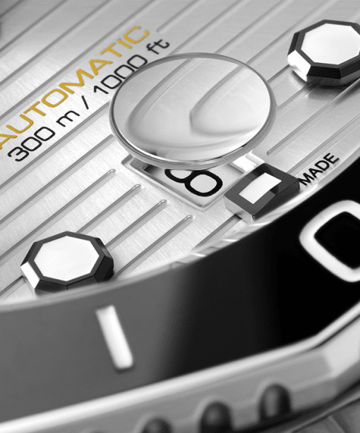 Teknisk robust med forbedret ergonomi, enveisroterende keramisk bezel med dykkeskala som passer perfekt til skiven og de åttekantede indeksene.