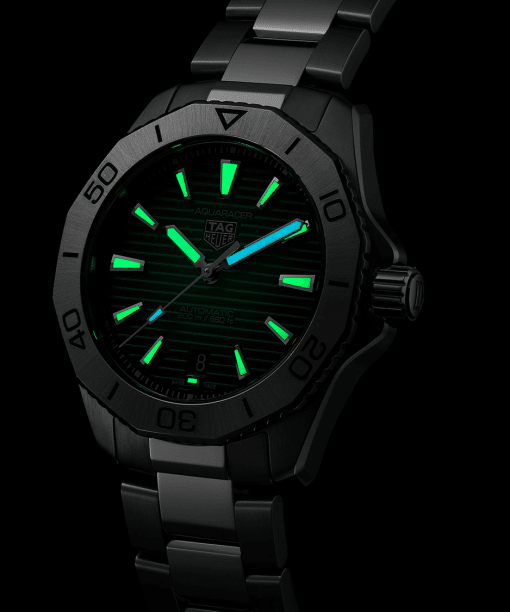 WBP2115.BA0627 – Tag Heuer Aquaracer Professional 200 er en eksklusiv og stilfull klokke som er designet for å imponere. Intens grønn, som regnskoger, har denne smoky skiven svært leselige visere og markører påført i hvit Super-LumiNova®. Klar til å utfordre grenser. Den sterkt motstandsdyktige 40 mm kassen i finbørstet og polert stål, dens enveisroterende bezel og screw-down crown gjør uret til en livsbestandig alliert under alle omstendigheter. Uret er drevet av kaliber 5, vanntett opptil 200 meter og har en gangreserve på 38 timer.