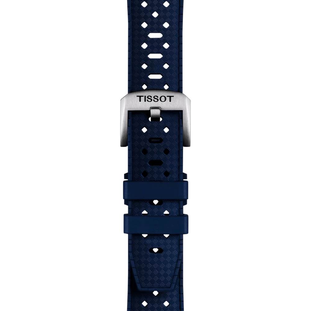 Original blå gummirem med standard spenne. Kompatibel med blant annet Tissot Seastar 1000 Quartz 40MM.